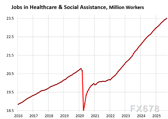 值得注意的是《平价医疗法案》额外350亿美元补贴将在12月31日彻底到期,预计将导致2200万美国人医保保费暴涨30%-80%,医院财务瞬间承压。这些“临时救命岗位”大概率会在2026年一季度集中消失,形成新一波裁员潮,到时候医疗行业可能从“吸纳就业大户”变成“裁员大户”。