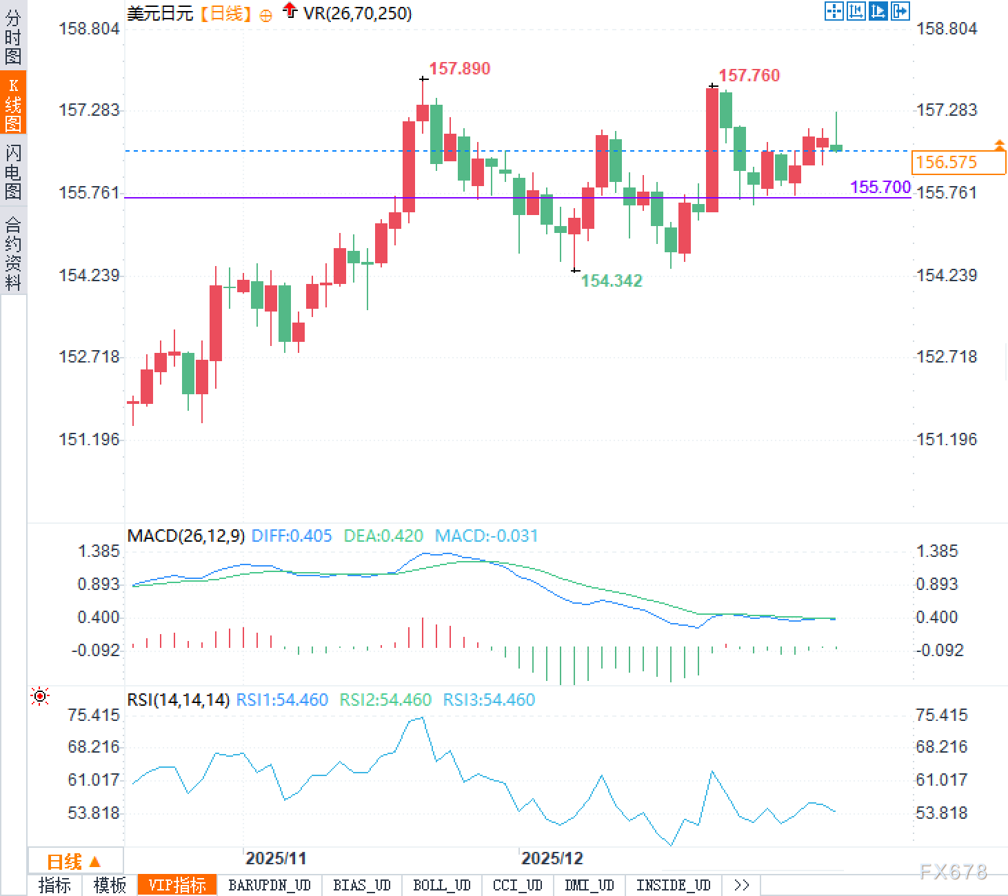 汇通财经APP讯——1月5日,星期一。美元在多数主要货币中仍保持相对坚挺,但在美元兑日元上却出现了更具代表性的日内反转:盘中一度上探至157.30附近后回落,美市盘前回到156.60一线附近,显示资金对“避险买美元”的反应并不线性,短线更像是在流动性回归过程中对仓位与预期的再平衡。本文尝试回答一个关键问题:当美元与日元各自都存在结构性掣肘时,美元兑日元为何仍能维持较大波动区间,而不是形成单边趋势?